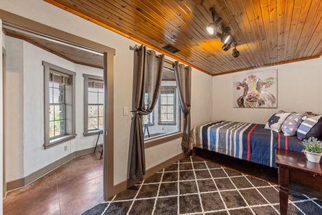 Indulge in Western Living: Step inside and discover a first-floor living room with vaulted ceilings, an abundance of windows that flood the space with natural light, and a cozy wood-burning fireplace. Cement and hardwood flooring add to the rustic charm, while the master suite offers its fireplace, creating a warm and inviting atmosphere. A flex room, ideal for use as a studio or additional bedroom, and a full bath on the main floor offer versatility.